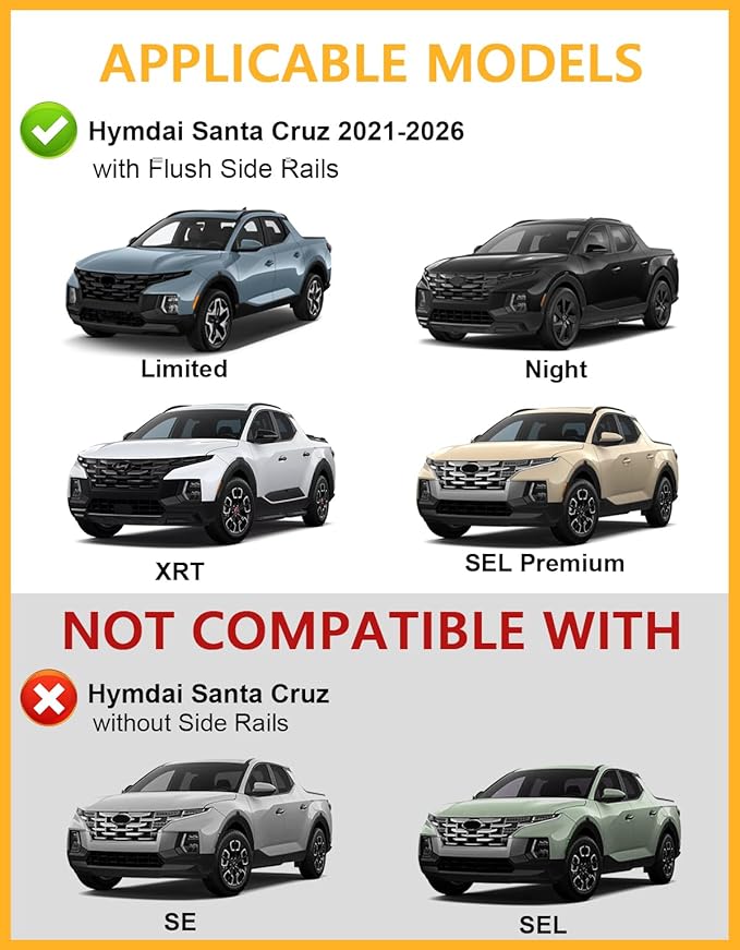 - 【Compatible Vehicle】Compatible with 2021 2022 2023 2024 2025 2026 Hyundai Santa Cruz SEL Premium Night Limited with Flush Side Rails. This roof rack cross bars is designed specifically for your vehicle, better than the universal ones.