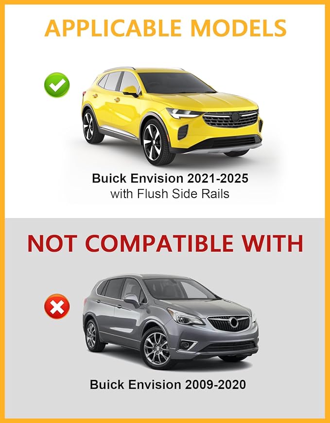 - 【Compatible Vehicle】Compatible with Buick Envision 2021 2022 2023 2024 2025 2026 (with Flush Side Rails).Note:Not for 2016-2020 models. This roof rack cross bars is specifically replacements for your vehicle, better than the universal ones.