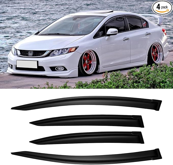 Window Rain Guards for 2012-2015 Honda Civic Sedan, Window Visor Guard Vent Wind Shade Deflector Rain Shield Protector Sun Visor for 12-15 Civic 2013 2014 12 13 14 15, Outside-Mount, 4 Pieces