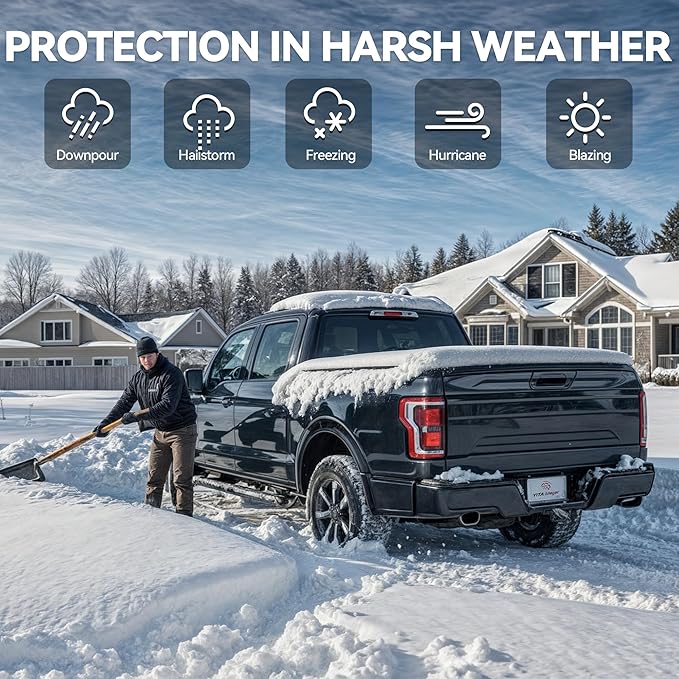 - Reliable and Weather-Resistant: Constructed from sturdy FRP material, this pickup tonneau cover provides better scratch and weather resistance, protecting your cargo from rain, snow, dirt, and UV while maintaining its appearance over time