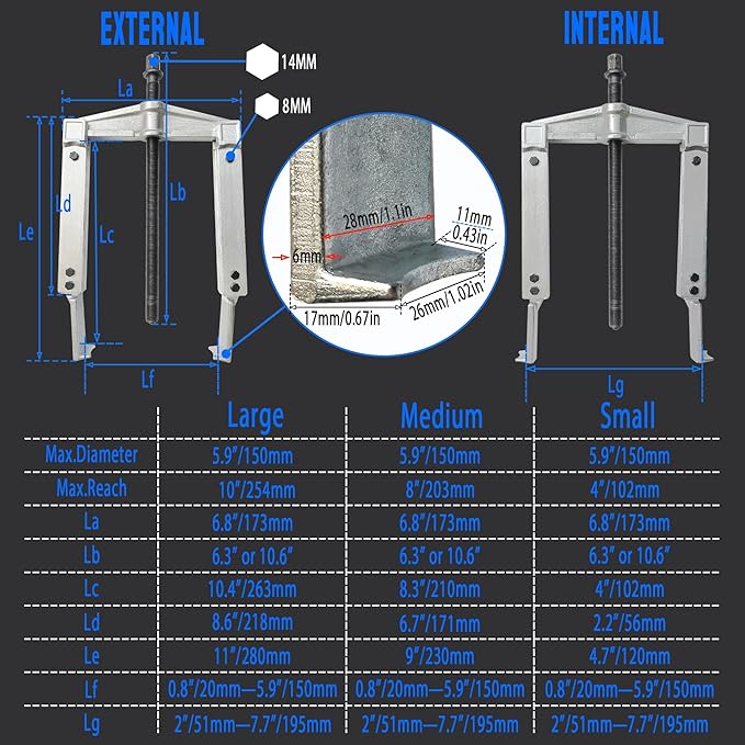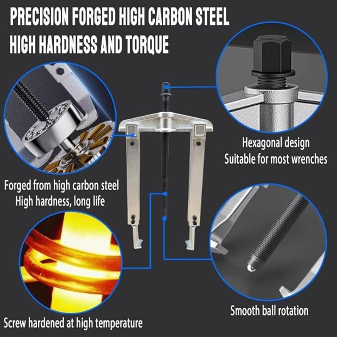 - 【High Quality Puller Set】 Our 2 jaw gear puller set is precision machined made high quality chrome vanadium steel, rugged drop-forged construction and heat-treated has higher strength and hardness. Chrome-plated surface for increased puller set corrosion resistance and longer service life.