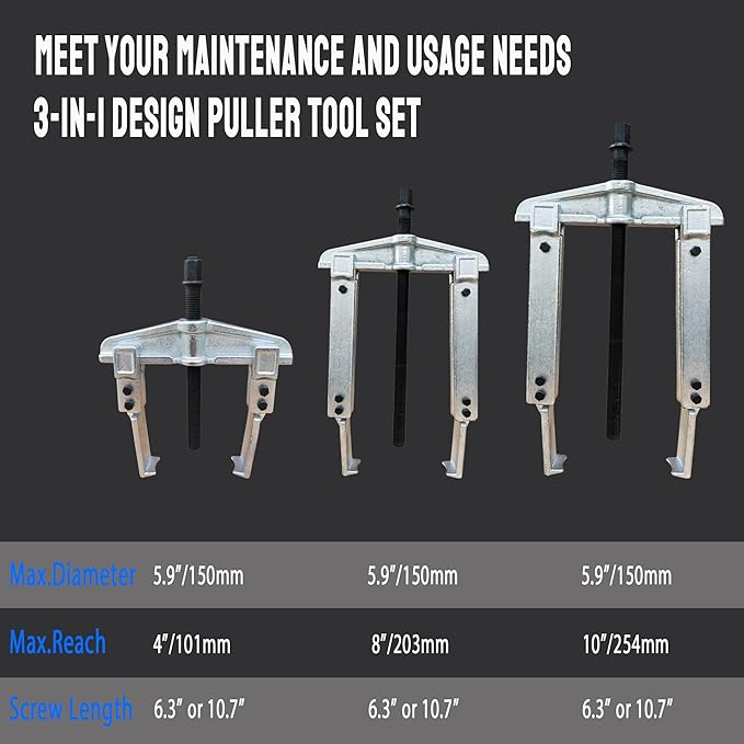 - 【Multi-Function 2 Jaw Puller Set】 This bearing/pulley puller kit for different types of bearings, gears, pulleys, flywheels and bushings, easy to use and no damage to maintenance parts. It's widely used in vehicle and other mechanical equipment maintenance work, the best solution for maintenance companies and professional mechanic.