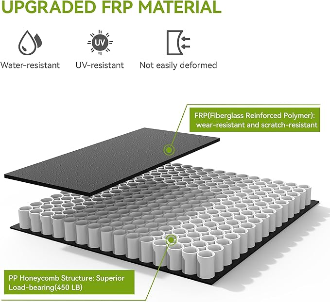 - Robust Construction: Crafted from Fiberglass Reinforced Polymer (FRP) and featuring an internal PP honeycomb structure, this bed cover provides reliable durability; It's resistant to wear and scratches, and can handle a maximum weight of 450LB, making it a reliable choice among truck tonneau covers