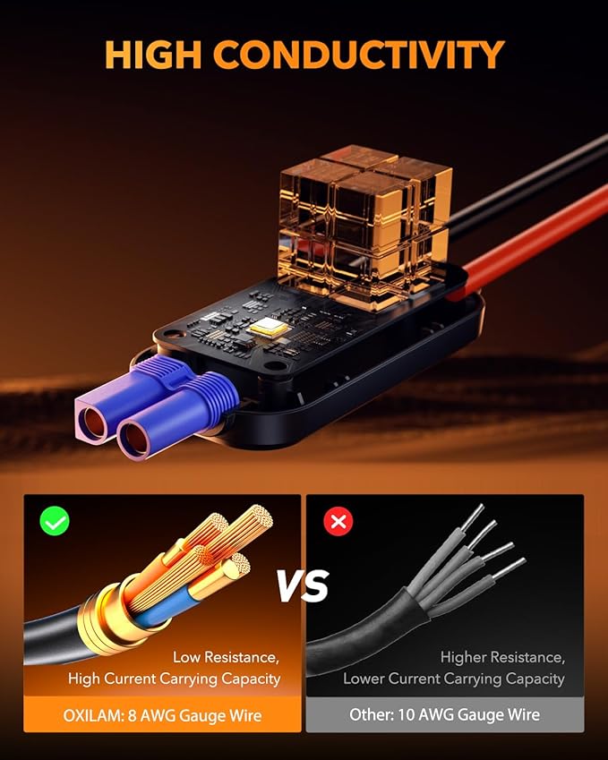 - 【Efficient 12V Car Battery Jump Starter】OXILAM jumper cables have heavy-duty clamps with better conductivity and an ergonomic grip for easy use. OXILAM use 8 AWG electrical wire which has lower resistance and a higher current carrying capacity than other brands on the market which use 10 AWG gauge wires. The extended cables help reach various battery terminals