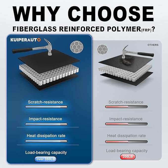 - [High Quality] Crafted from durable fiberglass and featuring a PP Honeycomb design, this tonneau cover offers exceptional heat dissipation, scratch resistance, and UV protection. It boasts a hardness rating of over 30HBa and can support over 350 pounds, ensuring long-lasting use. Its wear resistance is impressive, promising extended durability
