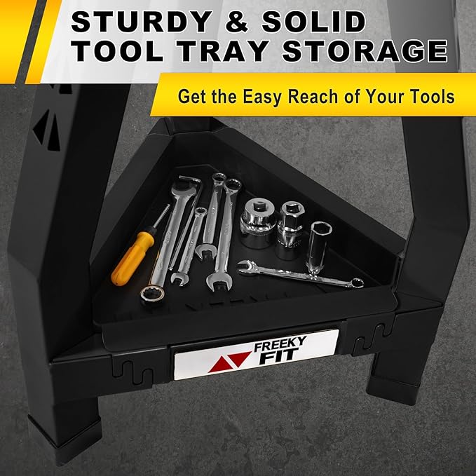 - 【Tool Tray Storage】The garage stool with steel tube and strong metal structure provides space for resting your feet. The design of this shop chair includes a triangular tool tray located under the seat. Make it convenient to store and access necessary tools and parts at anytime