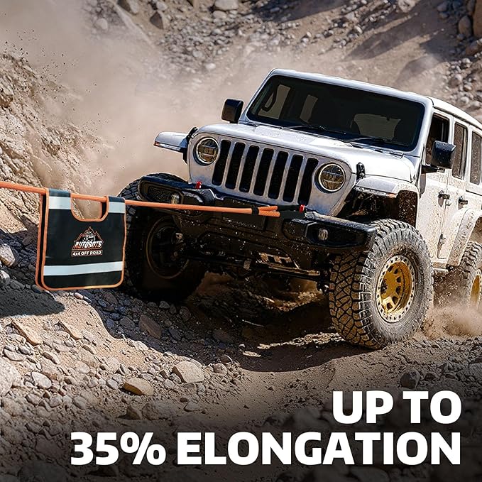 - TOP QUALITY :Our kinetic rope double braided with 100% nylon n66,with higher strength, better resilience and abrasion resistance, the elongation can reach 30%-35%,will help you get unstuck easily