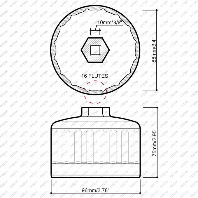 86.4mm 16Flutes Oil Filter Cap Wrench Removal Tool Socket for BMW Engines/for Volvo with 86mm Filter Housing Caps, Silver Heavy-Duty Aluminum