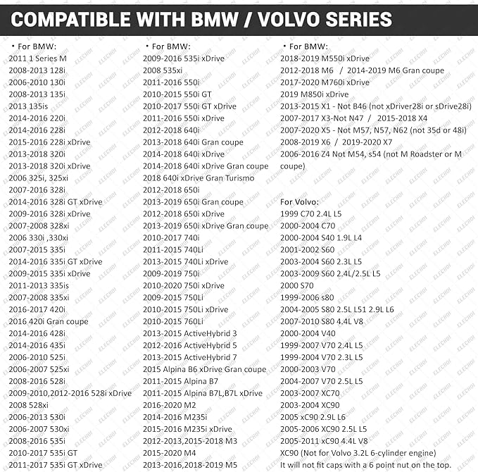 - FIT FOR BMW SERIES - For BMW 128i, 135i, 135is, 228i, 320i, 325i, 325xi, 328i, 330i, 335i, 335is, 335xi, 428i, 435i, 525i, 525xi, 528i, 528xi, 530i, 530xi, 535i, 535xi, 640i, 740i, 740li, Active Hybrid 3, Active Hybrid 5, Active Hybrid 7, M325i, M3, M4, X1, X3, X4, X5, X6, and Z4 (Please refer to the A+ page for detailed compatible models)
