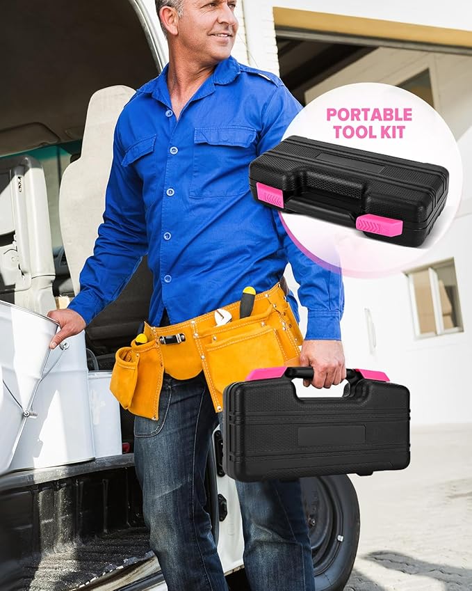 39pcs Pink Household Tool Set, Essential Hand Tool Kit with Plastic Toolbox for Home Repairs, DIY & Crafts, Perfect for Students & Everyday Use
