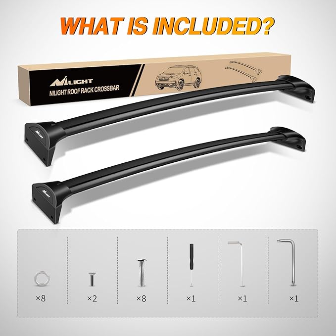 - MAXIMIZE LOAD CAPACITY & LESS WIND NOISE: The Nilight car roof rack cross bars is sturdy enough to withstand up to 165 LBS. The Honda Pilot crossbar adopts a wind noise reduction design, which makes the shape more beautiful and effectively reduces wind resistance and noise when moving forward quickly