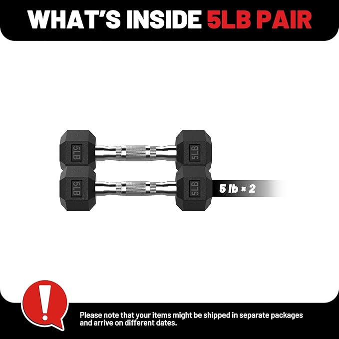 PAPABABE HEX Dumbbell Set 2.5-125lb, Rubber Encased Home Gym Dumbbells, Exercise & Fitness Weights Dumbbells for Women & Men, Hand Weight for Strength Training