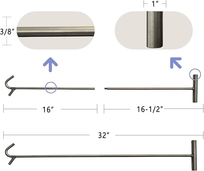 - Dimension: Puller rod dia x L: 3/8" x 32". Handle dia x L: 3/4" x 4-3/4".split length: 16.5’’.