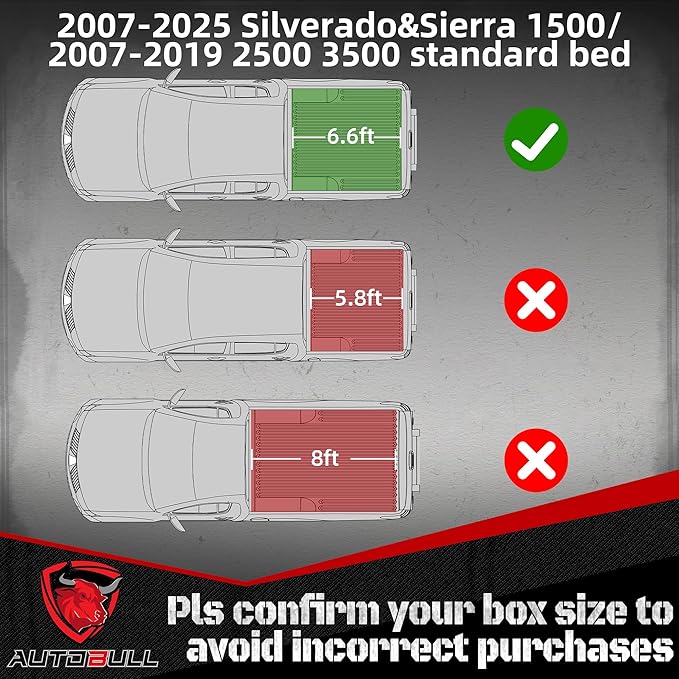 - Vehicle Compatibility: Designed with precision-cut dimensions to perfectly fit a 6.6 ft box for 2007-2025 Chevy Silverado & GMC Sierra 1500/2007-2019 2500 3500HD pickup truck.