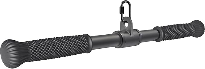 - MULTIFUNCTIONAL WORKOUT: 18" pull down bar with quick connect buckle is compatible with all cable machine systems. Builds triceps, biceps, back, shoulders, abs and grip strength