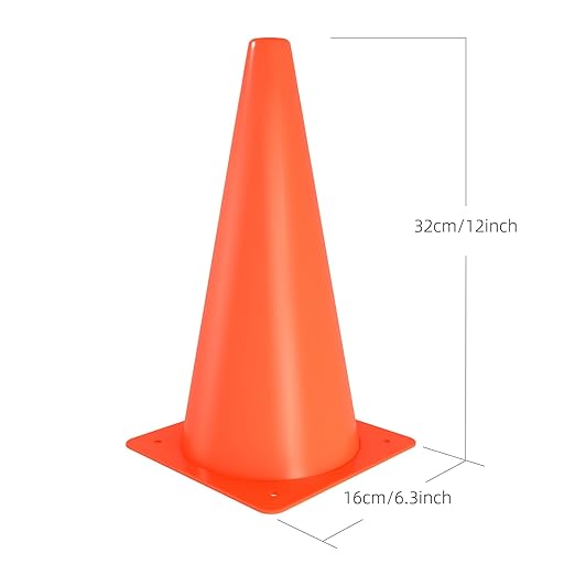 - 【Product Size】:Each traffic cones measure 12 inches in height,6.3 inches in diameter. Four holes on athletic cones for attachment, you do not need to worry it will blow all over the place.