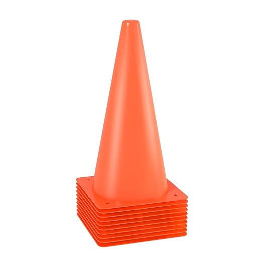 - 【multi-purpose】:Our 12" Orange traffic cones working for parks, fields, parking lots, roads or backyards .These training cones are ideal for bike and motorcycle training, dog training,kids games ,racetrack marking or festival and party decoration.