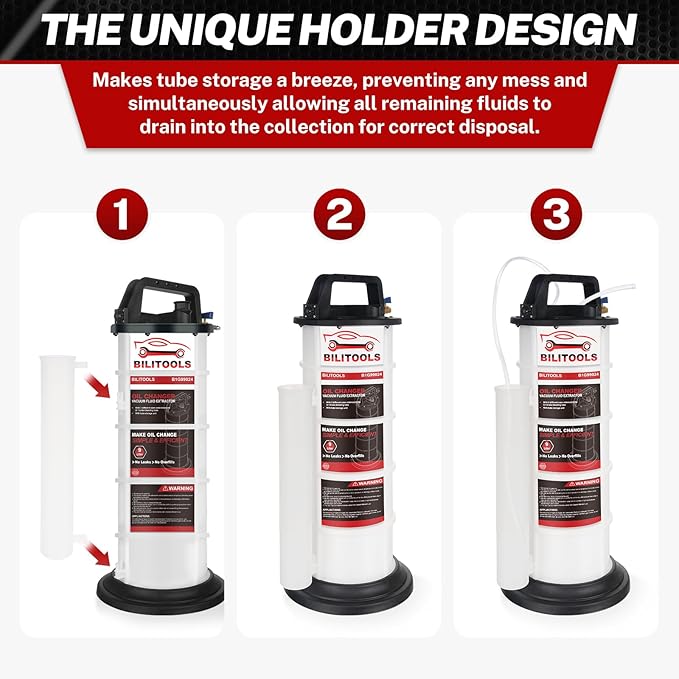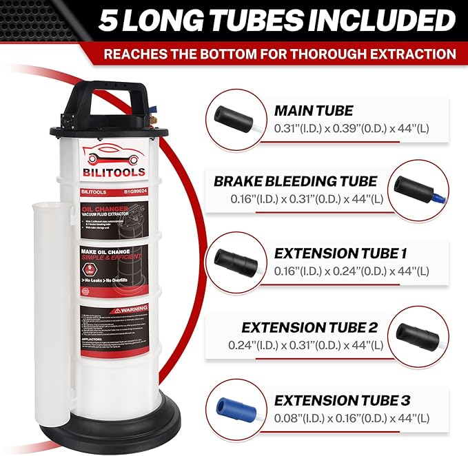 - Extra-Large 9L Capacity: Boasting a larger 9L tank than competitors, this oil extractor reduces the need for frequent emptying, speeding up your maintenance tasks. The thick, translucent design allows you to easily monitor fluid levels, handling larger volumes with ease.