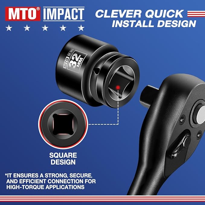 - Premium CR-MO Steel: Forged from high-grade Chromium-Molybdenum alloy steel, this 32mm shallow impact socket offers superior strength and crack resistance, even under extreme torque. Its shallow profile ensures durability and access to fasteners in confined areas, ideal for automotive repairs, machinery maintenance, or compact workspaces