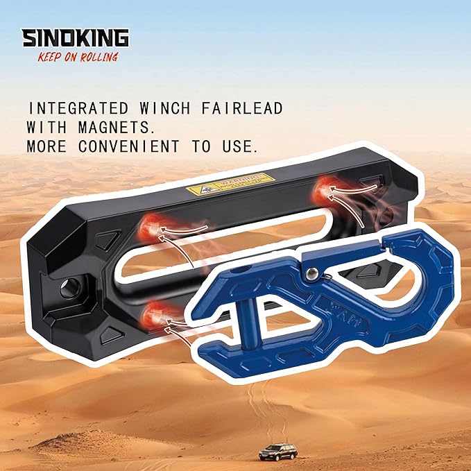 - 【Aesthetic Appeal】:Sinoking winch hook is placed in the fairlead , assembled as a whole. The winch fairlead with hook is designed with a sleek, professional look, enhancing the overall appearance of the winch setup.