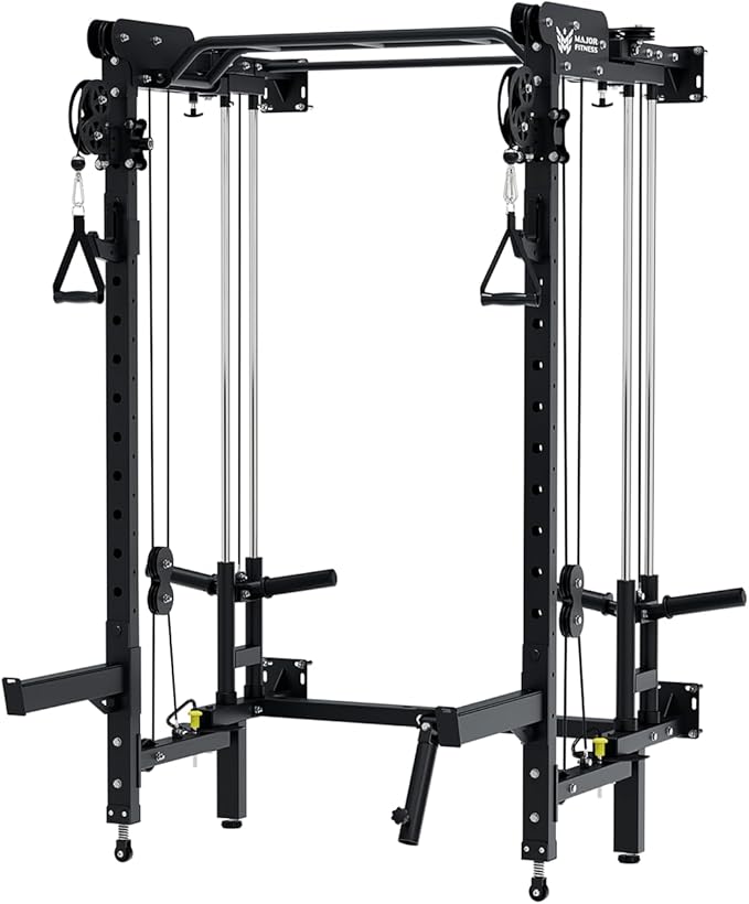 MAJOR FITNESS F35 Folding Power Rack 4-in-1 Home Gym with Cable Pulley System, Multi-Grip Pull-Up Bar, Landmine, 80+ Exercises Space-Saving Gym Equipment Easy Folding for Small Spaces