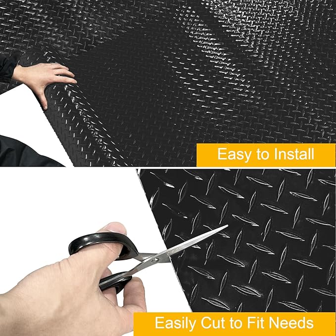 7.5x25 FT Garage Floor Mat, 2.8mm Thicked Flooring Roll 188 sqft Diamond Plate PVC Rubber Trailer Mat, Non-Slip Floor Protector Mat for Garage Warehouse Gyms Boats
