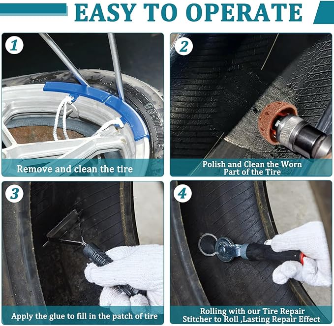 - More parts: Provide high quality Tire Roller and Tire Inner Liner Scraper for easy tire repair.Designed to roll down inner tube and tyre repair patches to remove trapped air, so as to ensure good adhesion and seal between patch and tyre.