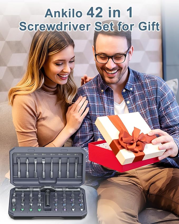 Upgraded 42 in 1 Magnetic Screwdriver Set, Ankilo DIY Ratchet Screwdriver Set, Multi Bit Magnetic Drive with 40 PCS Portable Repair Tool Kit for Home, Bike, Repairs - for Christmas Gifts (Grey)