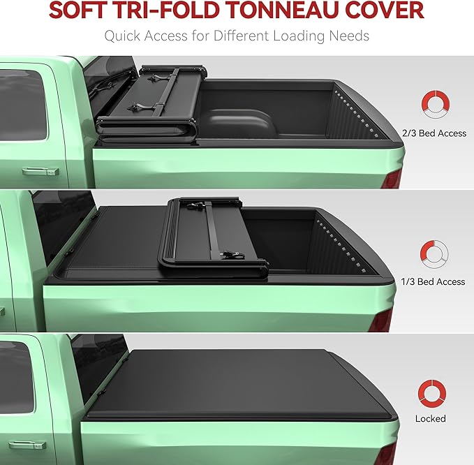 - Safety-Oriented Clamps: The soft folding tonneau cover incorporates specially designed latch clamps with anti-pop open features, ensuring the cover remain closed during transit for enhanced safety