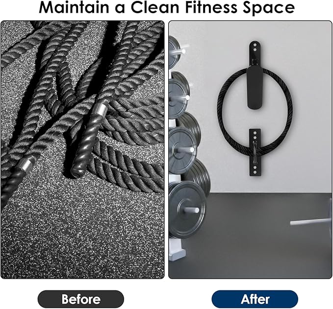 - Maintain a Clean Fitness Space: Use vertical space, reduce ground space occupation, and prevent battle ropes from getting tangled, knotted or twisted.