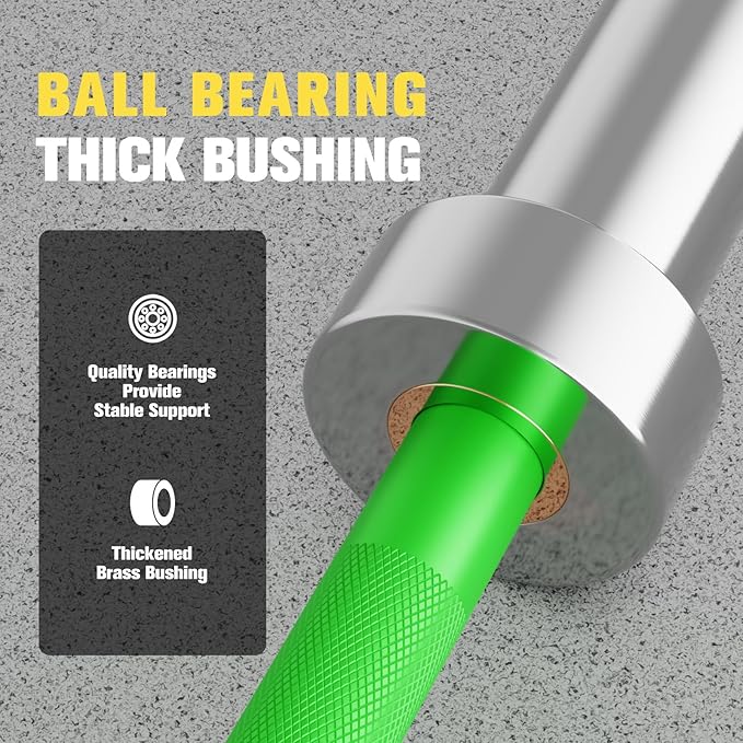 - RitFit 7ft Olympic Barbell with bearing weights 20 kg (~44 pounds), has a bar shaft diameter of 28 mm, and a length of 86.6" (7.2 feet). Needle bearings allow for a smoother, quieter spin and a more reliable turn over at maximum loads.Weight Capacity: 500lbs.