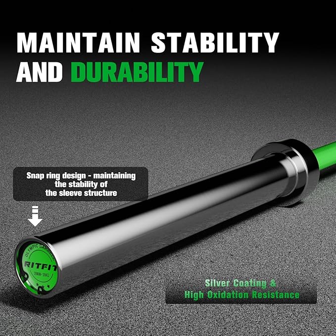 RITFIT 7FT Olympic Barbell for Strength and Weightlifting Training - 2 Inch Olympic Bar for Squat, Deadlift, Bench Press, Curl, Overhead Press - 500lbs/1000lbs/1500lbs Capacity