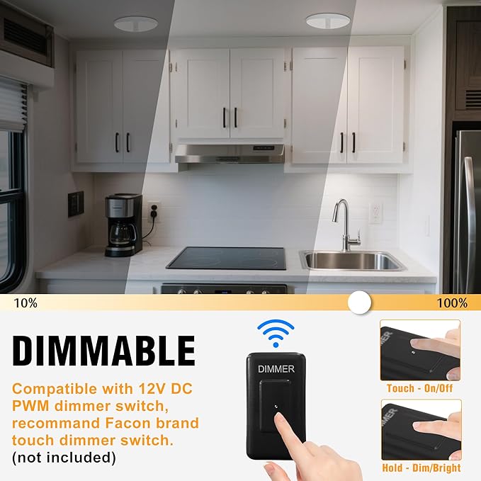 - Tool-Free Installation in 5 Minutes: Includes mounting screws and 2-wire setup (black=positive, white=negative). Fits flush to ceilings and replaces old dome lights in RVs, boats, or cabins effortlessly.