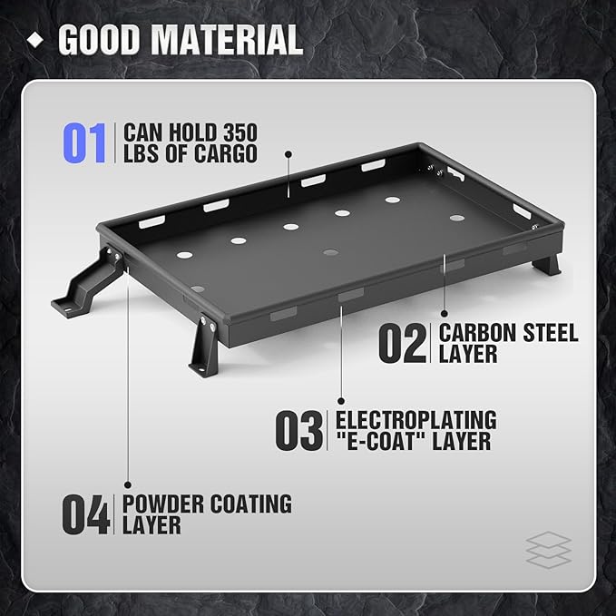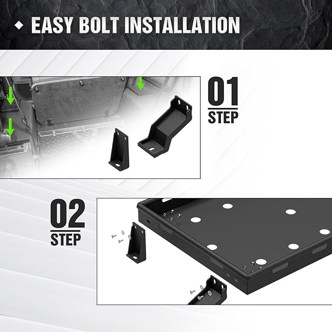 - 【Hassle-Free Installation】No drilling is required! The YZONA cargo rack features an easy bolt-on installation that can be completed with basic tools. Quickly add extra storage to your Jeep without the need for professional help or advanced skills.
