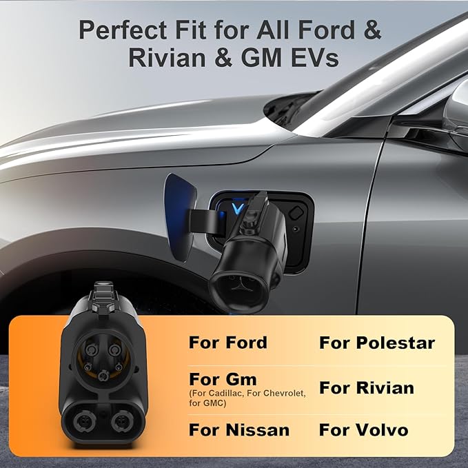 - 【Wide Compatibility】This Supercharger Adapter is compatible with All Ford Electric & Hybrid Cars (for Mustang Mach-E, F-150 Lightning, E-Transit, Maverick, Escape ST-Line Elite Hybrid, F-150, Escape Plug-in Hybrid) and compatible with all Rivian EVs (for R1T, R1S, R2, R3) and compatible with GM EVs ((for Cadillac, Chevrolet & GMC). Not Compatible for Audi, BMW, Cadillac, Chevrolet, Kia, Lucid, Mazda, Mercedes, MINI, Polestar, Porsche, Stellantis, Toyota, Volkswagen, Volvo. Please check your car model before purchasing.