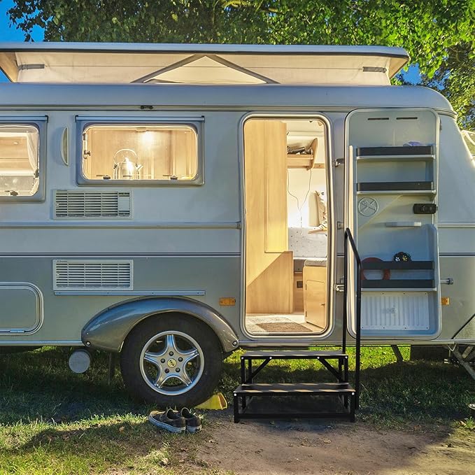 - Suitable for multiple scenarios: The multi-functional RV steps can be suitable for outdoor use with RVs and campers, and can also be used on the patio with a hot tub or pool. You can use it anywhere you need sturdy stairs!