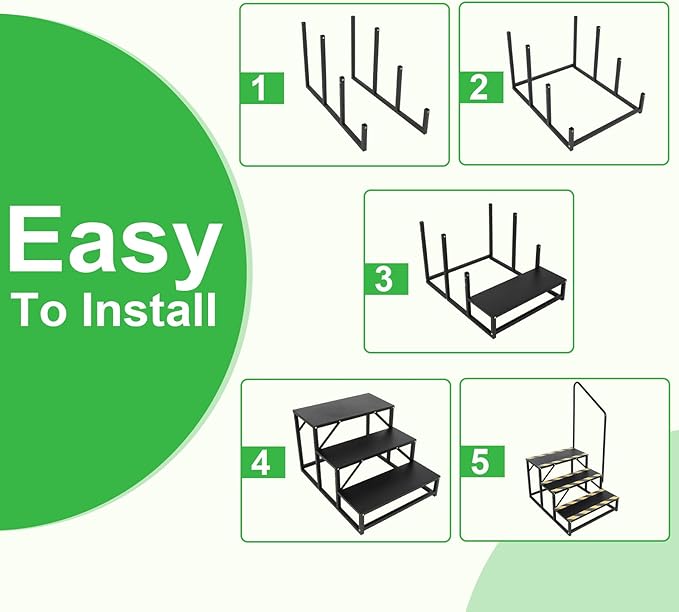 - Sturdy and durable: our RV steps are made of 2mm thick iron plate, each step is supported by an extra beam to increase the load capacity, and the triangular metal arm also serves to stabilize the steps. Can carry the weight of two people at the same time