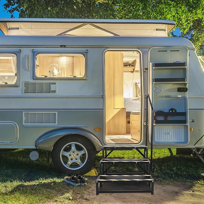 - Suitable for multiple scenarios: The multi-functional RV steps can be suitable for outdoor use with RVs and campers, and can also be used on the patio with a hot tub or pool. You can use it anywhere you need sturdy stairs!