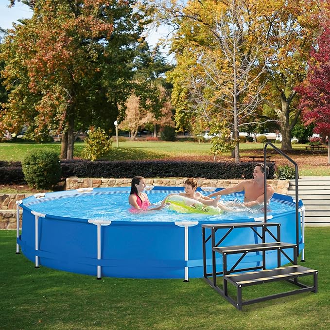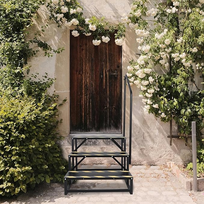 3 RV Step Stairs,Hot Tub Steps with Handrail,Portable Step Ladder for Travel Trailer,Camper,Porch,Pet Stair,Outdoor Stairs with Non-Skid Tapes