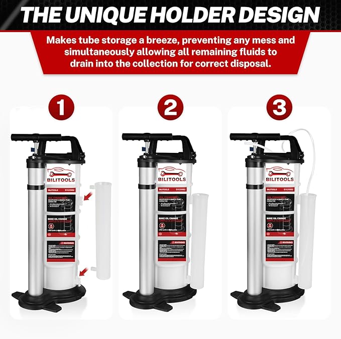 - Mess-Free Storage Tube: Comes with a dedicated storage tube holder that keeps hoses neatly organized, preventing spills and maintaining a clean workspace. This feature ensures all residual fluids are properly collected for safe disposal.