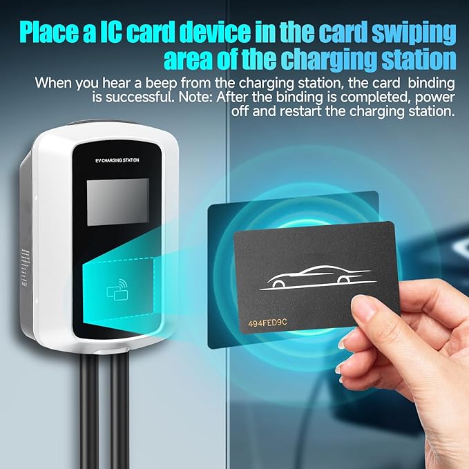 Level 2 EV Charger 48Amp, 16.5ft Cable, EVSE w/ J1772 Connector, NEMA 14-50 Plug, WiFi Enabled, Smart Display, RFID Card Electric Car Charger