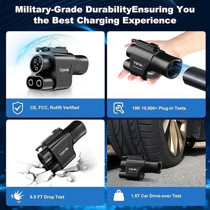 - 【Durable and FCC Certified】 Crafted from premium materials, the NACS to CCS1 adapter endures 20,000+ plug-ins and up to 3,000 pounds of load. Shock-resistant and FCC certified, it meets U.S. safety standards, ensuring reliable and safe charging. Its ergonomic design blends aesthetics and functionality.