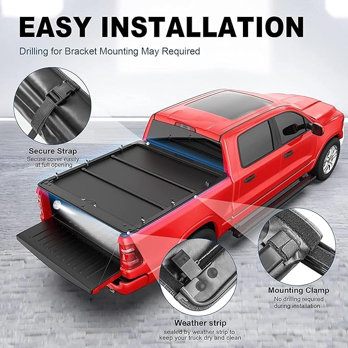 - Waterproof & UV resistant: This tonneau cover can be washed with soap and water, Keeps your equipment inside your bed dry.