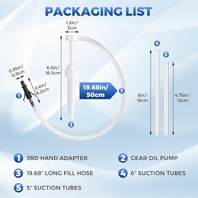 - 【Function】Lower unit gear oil pump 19.5 inch long hose used to pump fluid to narrow and inconvenient areas.Safe Transfer,Enables precise fluid transfer between containers, Or from container to engine, Gear oil transfer pump cooling system, and more.