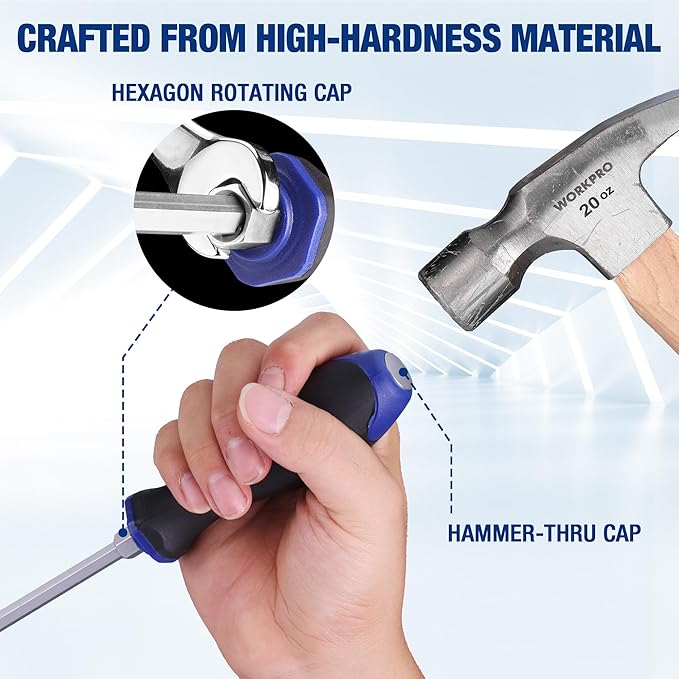 - Comfortable Ergonomic Grip: The screwdriver features a large, ergonomic PP+TPR handle for a soft, non-slip grip, providing better control and reduced hand fatigue; The chrome-plated steel end cap withstands hammer strikes for heavy-duty tasks
