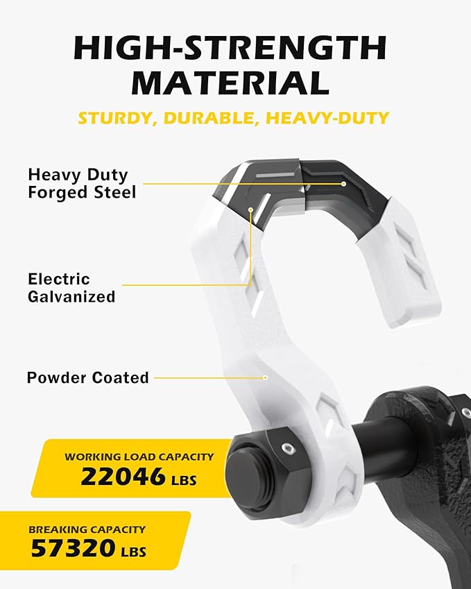 - HEAVY-DUTY STRENGTH: Forged for serious work, this ultra-rugged shackle boasts a working load limit of 10Tons/22,046 lbs and a breaking strength of 26Tons/57,320 lbs. It’s built to perform in the harshest conditions, ideal for off-road vehicles, trucks, ATVs, UTVs, and towing setups