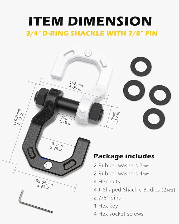 - BUILT TO LAST: Crafted from high-strength alloy steel with anti-corrosion coating, A-BOAR separate dring shackles are ready to tackle mud, rain, snow, and rocky trails. With our magnetic-lock innovation and precision engineering, the separate dring shackle is not just a recovery tool also your ultimate off-road companion