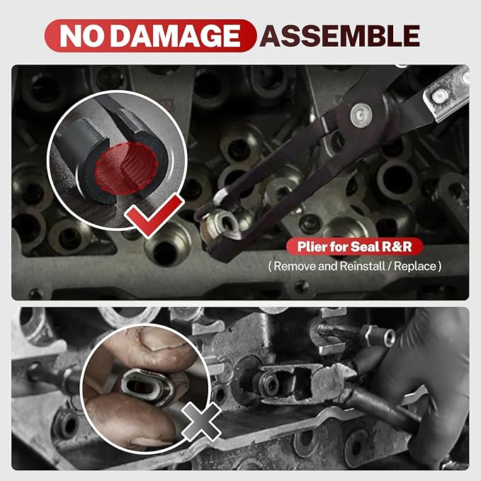- Enhanced Efficiency: Our Valve Spring Compressor Tools come equipped with an additional straight valve plier, designed to easily reach down around the valve stem into the confined areas of the seal to grip it for removal or installation.