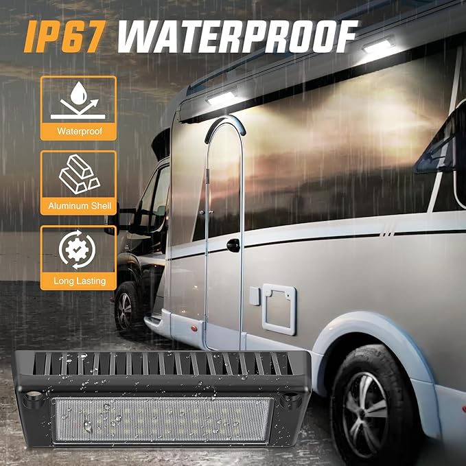 - Wide Application: Fits all 12V, and 24V vehicles, especially RVs, campers, and travel trailers, also suitable for toy haulers, tractor-trailers, cabinets, campers, motorhomes, marine boats, SUV roof racks, fire truck, and can even be mounted to the undercarriage of your vehicle, RV outside lights, RV porch light, food truck lights, roof rack lights, led scene light and cargo trailer lights, etc