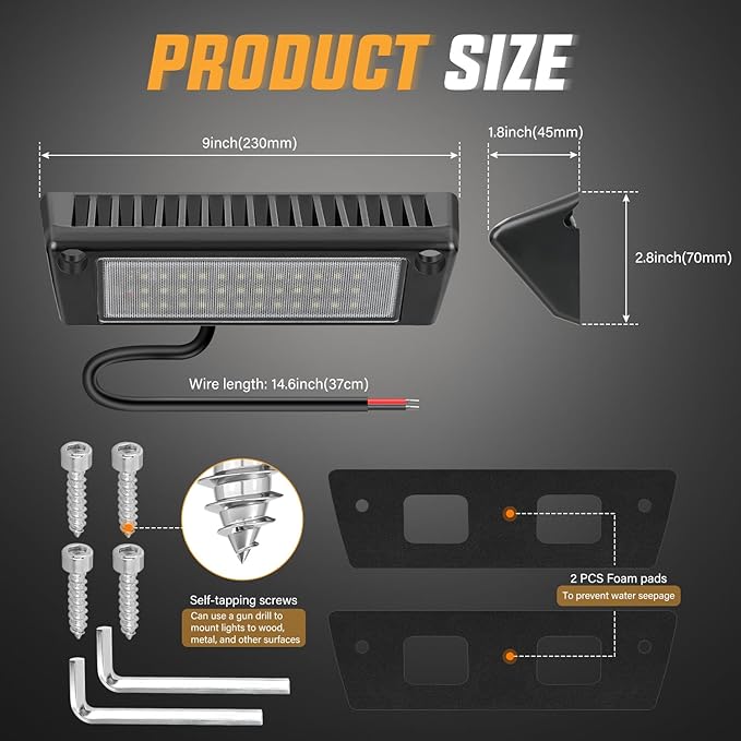- Package Included: 1 pair of lights, 1 pack of mounting hardware
